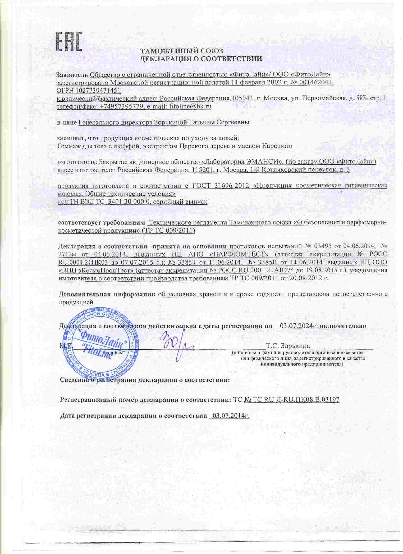 Декларация — Лосьон для лица «Фитолон» — хлорофилловый ламинарный