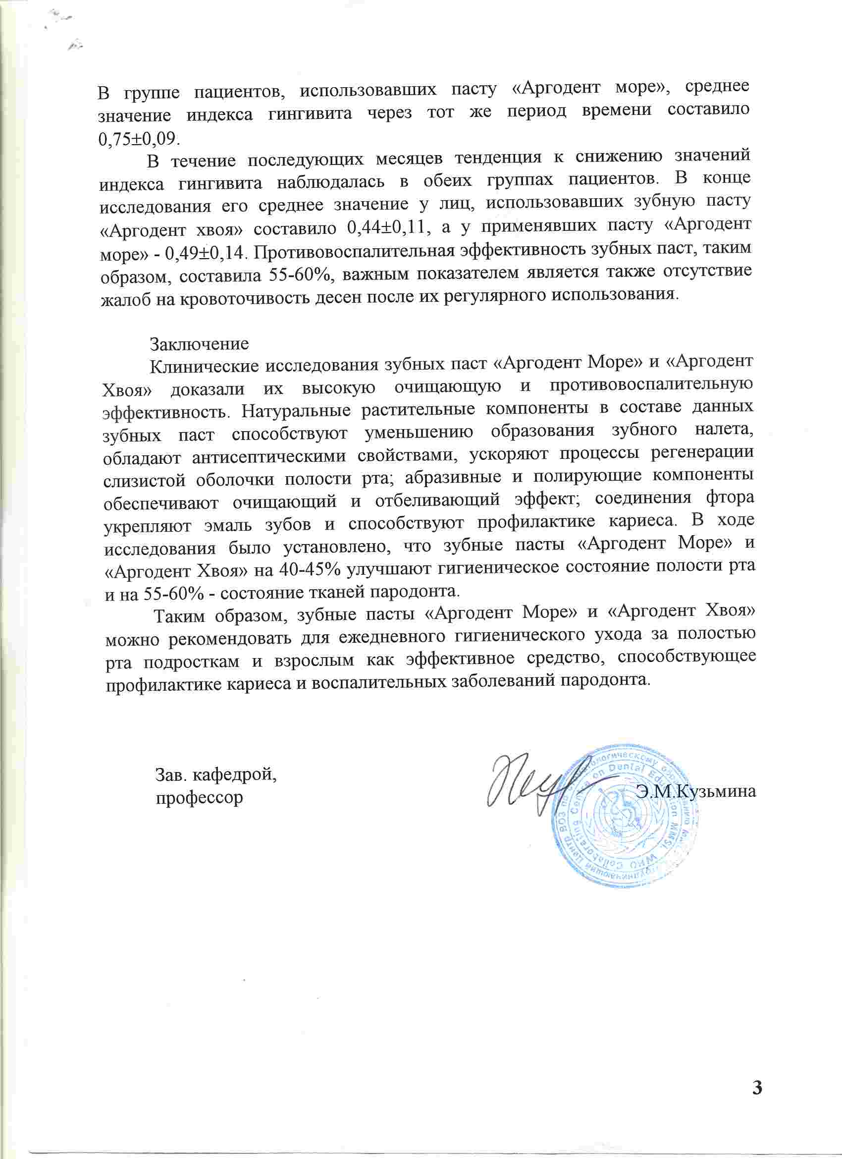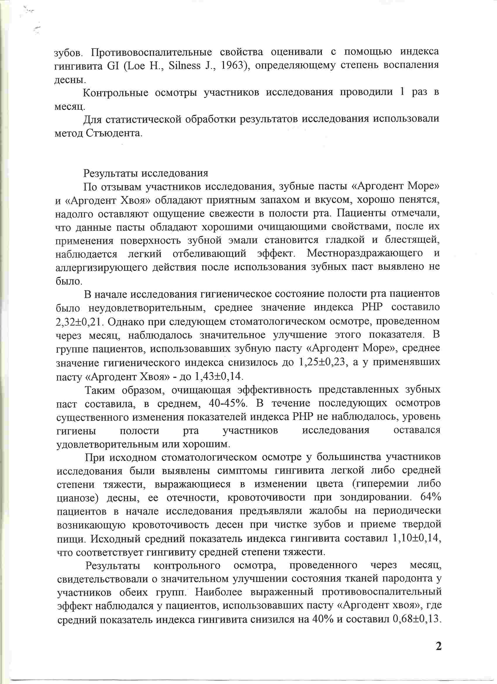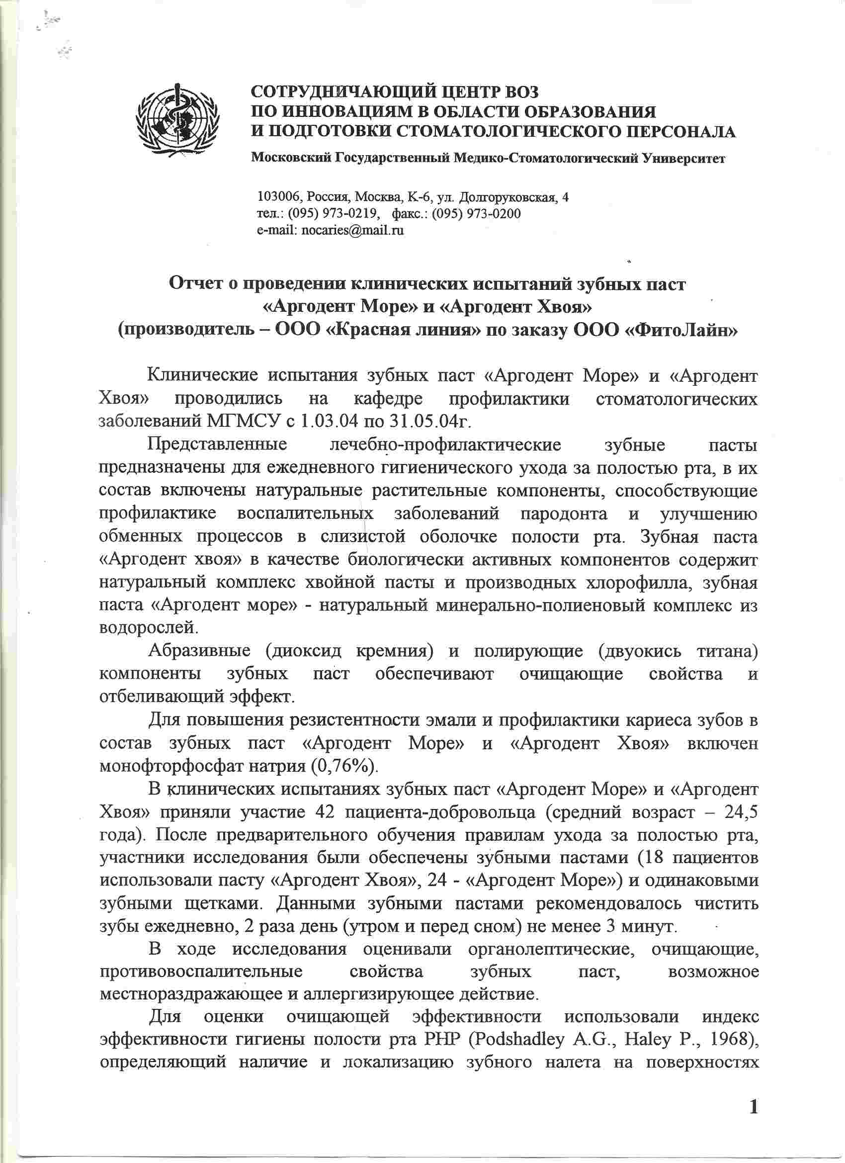 Отчет о проведении клинических испытаний зубных паст «Аргодент Море» и «Аргодент Хвоя»