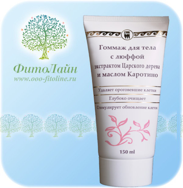 В качестве скраба использована люффа (натуральный, волокнистый материал), который стимулирует обновление кожи, поддерживает гидролипидный баланс. Экстракт Царского дерева способствует омоложению кожи тела, обладает противовоспалительными свойствами, поддерживает энергетический баланс клеток. Масло Каротино заключает в себе природные витамины и антиоксиданты. Важным фактором использования этого масла является наличие в нем провитамина А и витамина Е, которые незаменимы для обмена веществ кожи.