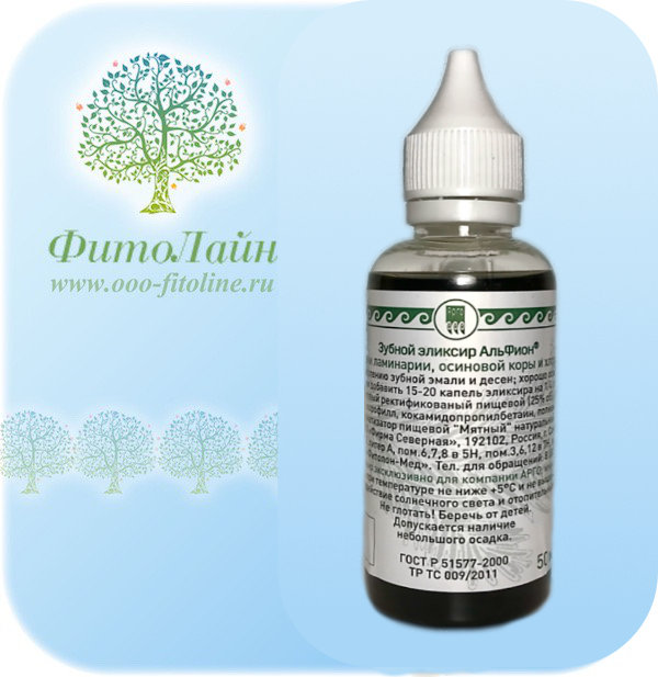 Зубной эликсир — эффективное профилактическое средство по уходу за слизистой оболочкой полости рта и зубной эмалью. Обладает заживляющим, противовоспалительным, дубящим и дезодорирующим действием. Способствует снижению кровоточивости десен и отечности мягких тканей полости рта. Хорошо освежает дыхание.